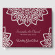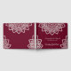 Elégant livre d'hôtes de Bourgogne avec une parties scintillant en faux argent complexe design floral Mandala représentant la floraison de la pureté dans notre âme. La couleur Bourgogne augmente l'énergie de manière réfléchie, digne et contrôlée. Encourage les sentiments de chaleur et de confort. Vous pouvez modifier le texte à partir du menu Personnaliser. Design original par SunFreeStar.
