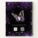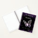 Arrière - plan noir, texte blanc. Décoré de faux parties scintillant violet, de mousseux et d'un grand papillon. Personnalisez et ajoutez une date, un nom, un événement. Le nom est écrit avec un script de style moderne écrit à la main.