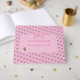 Le design personnalisé de l'ours mignon et des ballons présente un motif de ballons de couleur pastel comme arrière - plan du nom de l'enfant et de la date d'échéance, qui est affiché au centre du motif, contre une bordure rose. Le côté inverse présente une seule image d'un adorable petit ours en accrochant un tas de ballons. Conçu pour coordonner avec les invitations "Bear mignonne et Balloons à thème Baby Shower, cartes de remerciement, et accessoires.