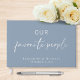 Chic livre d'invité bleu poussiéreux qui présente de la vraie feuille d'argent, "Nos gens préférés" dans un mélange de typographie simple et d'un script moderne, vos noms dans l'élégante typographie serif classique et votre date mariage. Customisez votre titre sur la colonne vertébrale et ajoutez une photo de fiançailles préférée au verso (ou supprimez).