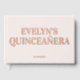 Voici notre livre d'invités Quinceañera, avec le titre "Quinceañera" en police serif élégante, magnifiquement en papier réel. Conçu dans un style minimaliste, il saisit l'essence de votre journée spéciale.