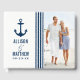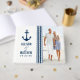 Le livre d'invités de mariage personnalisé propose un thème nautique avec ancre de bateau bleu marine, motif rayures, texte personnalisé et photo pouvant être personnalisée.