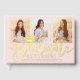 Ajoutez une touche élégante et personnalisée aux décorations de la fête de fin d'études supérieures ou secondaires avec un livre d'or personnalisé de 4 photos rose et doré. Les photos et le texte de ce modèle sont simples à customiser, y compris les messages de félicitations des parents sur le dos. Les pages intérieures peuvent être doublées ou vierges pour servir de scrapbook, de carnet ou de journal. L'avant, le dos et la colonne vertébrale sont gaussés d'une véritable feuille métallique. Le design rose et or est composé de calligraphie de script chic et tendance, de typographie minimaliste moderne et élégante et de quatre images de votre choix, telles que des images senior ou des images de la cérémonie de début. Ce livre d'invités unique fait une idée cadeau élégante de remise de diplômes de gardien. Félicitations au diplômé !