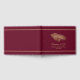 Élégant livre d'hôtes de vacances bordeaux et or, avec des graphiques d'un cône de pin doré et branche de pin. Personnalisez les champs de texte pour votre maison de vacances ou fête de Noël.
