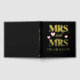 Livre d'or romantique de mariage de typographie en noir pour un mariage lesbien avec MRS et MRS. écrit en lettres d'or gras avec un coeur tourbillonnant et, et rose. Livre d'or mariage lesbienne et noir aux coeurs roses. Feuille d'or Livre d'or Mme & Mme mariage pour un mariage LGBTQ avec un design typographique romantique en feuille d'or et rose.
