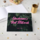 Ce livre d'hôtes tropical rose Bat Mtizvah est parfait pour capturer les sentiments des clients au service ou à la fête. Le design est composé de feuilles de palmiers verts et d'un texte personnalisé rose pour célébrer votre Bat mitzvah. Entrez l'outil de conception Zazzle pour effectuer des ajustements.
