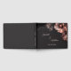 This elegant contemporary wedding guest book features pink metallic flowers on a black background with bride and groom name and the wedding date.