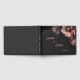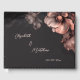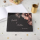 This elegant contemporary wedding guest book features pink metallic flowers on a black background with bride and groom name and the wedding date.