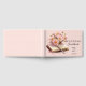 Une belle image rose de Gerbera Daisies sur un livre avec une image de plume. Le texte est "Livre d'or MARIAGE" et les noms de la mariée et du marié avec la date du mariage
