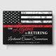 Cette conception comprend un drapeau de pompiers avec des rayures noires et blanches, ainsi qu'une fine bande rouge. Le texte "La légende prend sa retraite" se trouve au-dessus du nom du pompier, du lieutenant ou du chef qui prend sa retraite. Célébrez cette étape importante dans le style!