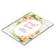 Ce beau et élégant livre d'or pour une fête prénuptiale présente des fleurs et feuillages d'hibiscus rose et orange aquarellés sur un cadre géométrique doré. Le texte combine une écriture manuscrite et des polices serif pour un style moderne et élégant. C'est parfait pour une fête prénuptiale estivale et tropicale.