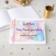 Baby shower Livre d'hôtes avec un arrière - plan d'aquarelle pastel mélangé, une licorne illustrée avec des fleurs, et une lune peinte dans le ciel. Les mots à l'avant du livre peuvent être changés.