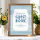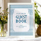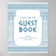 Pancarte de livre d'or de fête avec des piliers de temple minimalistes et un motif grec méandre en bleu. Parfait pour vos mariages, fiançailles, fêtes de fin d'études, anniversaires, save the dates, enterrements de vie de jeune fille et fêtes d'anniversaire sur le thème de la Grèce antique ou de la Rome antique.