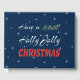 Avoir un texte de Noël Holly Jolly avec étoiles, baies, bougie et hiver décoration à feuillage persistant sur bleu foncé arrière - plan