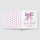 Pretty birthday party guest book featuring a purple coquette bow ribbon. The words can be changed to suit your own details or requirements