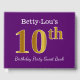 Ce livre d'or est orné du numéro ordinal "10e" avec un aspect faux or. Il porte également un nom customisé et un arrière - plan de couleur violette. Il pourrait être utilisé à une fête pour quelqu'un célébrant son dixième anniversaire. [~Z0000057]