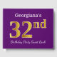 Ce livre d'or porte le numéro ordinal "32e" avec un aspect faux/imitation or. Il porte également un nom personnalisé et un arrière - plan de couleur violette. Il pourrait être utilisé à une fête pour quelqu'un célébrant son trente-deuxième anniversaire. [~Z0000057]