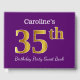 Ce livre d'or est orné du numéro ordinal "35e" avec un aspect faux or. Il comporte également un nom personnalisé et un arrière - plan de couleur violette. Il pourrait être utilisé à une fête pour quelqu'un célébrant son trente-cinquième anniversaire. [~Z0000057]
