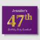 Ce livre d'or est orné du numéro ordinal "47th" avec un aspect faux/imitation or. Il porte également un nom customisé et un arrière - plan de couleur violette. Il pourrait être utilisé à une fête pour quelqu'un célébrant son quarante-septième anniversaire. [~Z0000057]