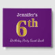 Ce livre d'or présente le numéro ordinal "6th" avec une apparence de faux or. Il porte également un nom personnalisé et un arrière - plan de couleur violette. Il pourrait être utilisé à une fête pour quelqu'un célébrant son sixième anniversaire. [~Z0000057]