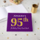 Ce livre d'or est orné du numéro ordinal "95e" avec un aspect faux or. Il porte également un nom customisé et un arrière - plan de couleur violette. Il pourrait être utilisé à une fête pour quelqu'un célébrant son quatre-vingt-quinzième anniversaire. [~Z0000057]