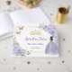 Cherchez votre journée spéciale pour les années à venir avec un livre d'or customisé. Doté d'une coing fille habillée d'une robe de bal violet, violet, lilas, fleurs de lavande et papillons d'or. Personnalisez-le avec vos détails facilement et rapidement, appuyez simplement sur le bouton customiser pour réorganiser et formater le style et le placement du texte. Parfait pour l'anniversaire de Sweet sixteen, Quinceanera, Debutante Ball, 18ème anniversaire et plus d'occasions! c) Le Happy Cat Studio