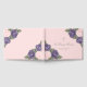 Elégant livre d'or/funéraire fleuri violet et rose avec croix d'argent, roses d'aquarelle violet et rose et fleurs d'haleine de bébé sur un arrière - plan roux.