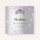Un arrière - plan métallique à l'aspect faux argenté décoré de poussière de parties scintillant violet et violet et d'une tiare. Personnalisez et ajoutez un nom et une date.