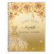 Pour une Quinceañera, fête du 15e anniversaire. Un arrière - plan en faux or avec de la poussière de parties scintillant, une robe et des roses dorés, des fleurs. Le nom est écrit avec un script de style moderne écrit à la main. Personnalisez et ajoutez un nom et une date.