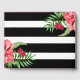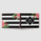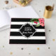 Élégantes rayures géométriques horizontales noir et blanc et fleurs roses exotiques