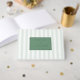 Ce livre d'or élégant pour invités de mariage présente un design épuré et moderne avec des rayures verticales dans des tons de vert sauge et de vert plus foncé. La zone de texte centrale est remplie d'une couleur vert foncé uni, offrant un arrière-plan sophistiqué pour les noms et la date personnalisables écrits dans une typographie sans empattement et nette. L'esthétique minimaliste dégage simplicité et raffinement, ce qui la rend parfaite pour les mariages contemporains. Sa palette de couleurs fraîches et son motif rayé classique créent une atmosphère accueillante, idéale pour recueillir les vœux de bonheur des invités le jour de votre mariage.