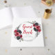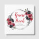 Beautiful birthday party guest book with a burgundy red, black and silver faux glitter frame with floral flower arrangements. Perfect for a birthday party. The words can be changed to suit your own details or requirements
