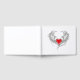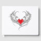 Coeur rouge peint de façon artistique avec ailes d'ange gris, décoré de contour lisse noir.