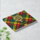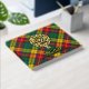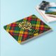 Clan Buchanan badge crête entouré d'une sangle et boucle sur l'arrière - plan tartan. Texte avant, arrière et colonne vertébrale personnalisé.