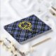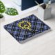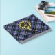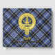 Clan Clark badge crête entouré d'une sangle et boucle sur l'arrière - plan tartan. Texte avant, arrière et colonne vertébrale personnalisé.