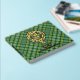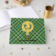 L'insigne de l'emblème du lion Clan Currie est entouré d'une courroie et passe au-dessus de l'arrière - plan tartan. Texte avant, arrière et colonne vertébrale personnalisé.