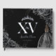 Cherchez votre journée spéciale pour les années à venir avec un livre d'or customisé en argent réel. Avec des roses noirs vibrants, une fille en robe noire glittère et des accents d'argent. Personnalisez-le avec vos détails facilement et rapidement, appuyez simplement sur le bouton Modifier à l'aide de l'outil de conception pour réorganiser et formater le style et le placement du texte. c) Le Happy Cat Studio