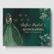 Découvrez des souvenirs inoubliables avec une robe verte d'émeraude florale Quinceañera, un livre d'hôtes parfait pour célébrer un 15e anniversaire spécial. Cet élégant livre d'hôtes présente une magnifique robe vert émeraude entourée de délicats motifs floraux, ajoutant une touche de sophistication et de charme. Les hôtes peuvent laisser des messages sincères et les meilleurs voeux, créant un souvenir durable pour la fille d'anniversaire à chérir éternellement. Le design intemporel s'ajoute à merveille à tous les thèmes de quinceañera, ce qui en fait un complément idéal à cette célébration unique.
