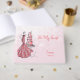 Mode dessinée à la main illustration d'une femme en robe rose avec un gros gâteau recouvert de magnolias. L'Arrière - plan est rose et pétillant. Les mots "Joyeux anniversaire" et votre nom peuvent être customisés facilement en cliquant sur le bouton abc. Illustré et conçu par © Janin f.