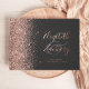 Cet élégant livre d'invités de mariage comporte une bordure rose en faux parties scintillant or sur un arrière - plan noir. Customisez facilement le vrai texte de feuille d'or rose, avec les noms du couple dans la calligraphie d'écriture manuscrite fantaisie sur une grande esperluette grise. Ajoutez le texte de votre choix à l'avant et à la colonne vertébrale.