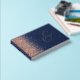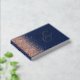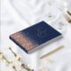 Cet élégant livre d'invités de mariage comporte une bordure rose en faux parties scintillant or sur un arrière - plan bleu marine. Customisez facilement le vrai texte de feuille d'or rose, avec les noms du couple dans la calligraphie d'écriture géante sur une grande esperluette. Ajoutez le texte de votre choix à l'avant et à la colonne vertébrale.