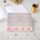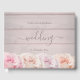 Ce magnifique livre d'hôtes mariage présente une rangée de roses dans différentes nuances de broussailles à l'avant et à l'arrière sur un arrière - plan rustique en planches de bois. Personnalisez-le avec vos noms et votre date de mariage.