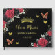 Coordonez votre fête avec ce superbe livre d'or floral personnalisé avec une véritable feuille métallisée de roses rouges et noires élégantes ! Personnalisez-le facilement et rapidement, il suffit d'appuyer sur le bouton Modifier à l'aide de l'outil de conception pour réorganiser et formater le style et l'emplacement du texte et des images. Caractéristiques de beaux roses rouges et noires aquarelles vibrantes, papillons rouges et or et fond noir. Parfait pour les Quinceañeras, les Sweet 16, les fêtes des 18 ans, les Bar Mitzvah, les douches de mariée, les mariages et plus encore. Découvrez les articles de coordination disponibles en magasin pour créer une célébration cohérente et élégante ! (c) Somerset Fine Paperie