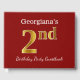 Ce livre d'or présente le numéro ordinal "2e" avec une apparence de faux or. Il porte également un nom customisé et un arrière - plan de couleur rouge. Il pourrait être utilisé à une fête pour quelqu'un célébrant son deuxième anniversaire. [~Z0000055]