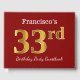 Ce livre d'or est orné du numéro ordinal "33e" avec un aspect faux/imitation or. Il porte également un nom personnalisé et un arrière - plan de couleur rouge. Il pourrait être utilisé à une fête pour quelqu'un célébrant son trente-troisième anniversaire. [~Z0000055]