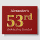Ce livre d'or est orné du numéro ordinal "53e" avec un aspect faux/imitation or. Il porte également un nom customisé et un arrière - plan de couleur rouge. Il pourrait être utilisé à une fête pour quelqu'un célébrant son cinquante-troisième anniversaire. [~Z0000055]