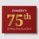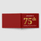 Ce livre d'or est orné du numéro ordinal "75e" avec un aspect faux or. Il porte également un nom personnalisé et un arrière - plan de couleur rouge. Il pourrait être utilisé à une fête pour quelqu'un célébrant son soixante-quinzième anniversaire. [~Z0000055]