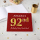 Ce livre d'or porte le numéro ordinal "92e" avec un aspect faux/imitation or. Il comporte également un nom personnalisé et un arrière - plan de couleur rouge. Il pourrait être utilisé à une fête pour quelqu'un célébrant son quatre-vingt-dix-deuxième anniversaire. [~Z0000055]