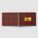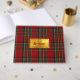 Livre d'invité coloré tout usage fait dans le classique rouge, vert, bleu, jaune, noir et blanc motif tartan Royal Stewart. Une zone de texte en or, à l'avant du livre, a du texte personnalisé rouge prêt à être personnalisé.