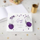 Livre D'or royal violet & fleurs blanches argent mariage